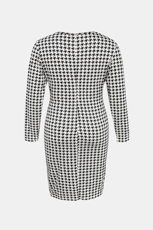 Plus Size Houndstooth Button-Down Long Sleeve Dress